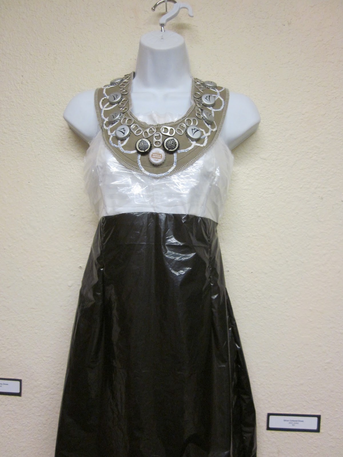 Susan and I went to a Recycled Art Display. She had been to the showing of all the dresses and gowns made from recycled plastic and other odds and ends. She said they looked much better on the young college students from NAU than the manaquins. Lots of imaginationsBeautifully made over a muslin base.